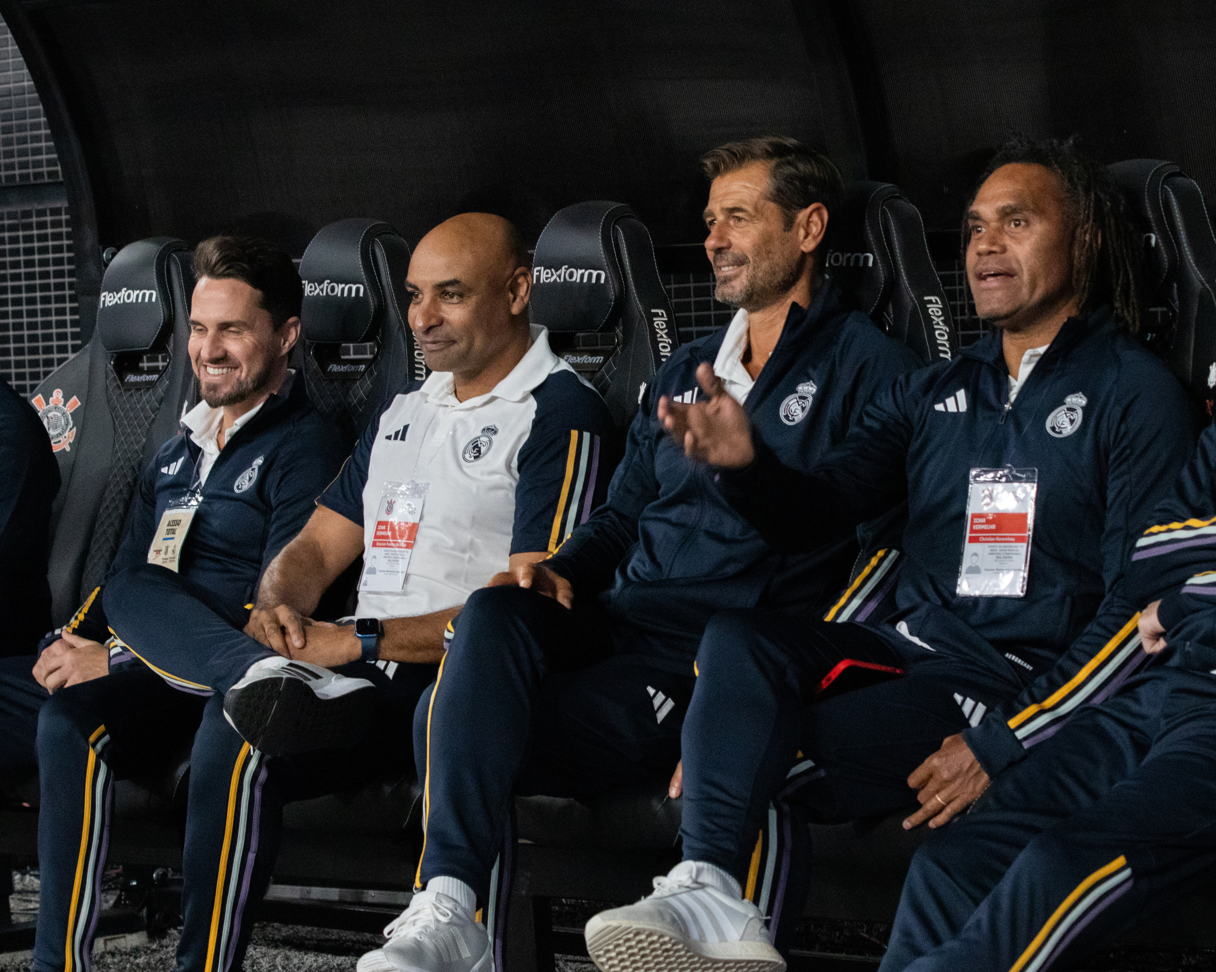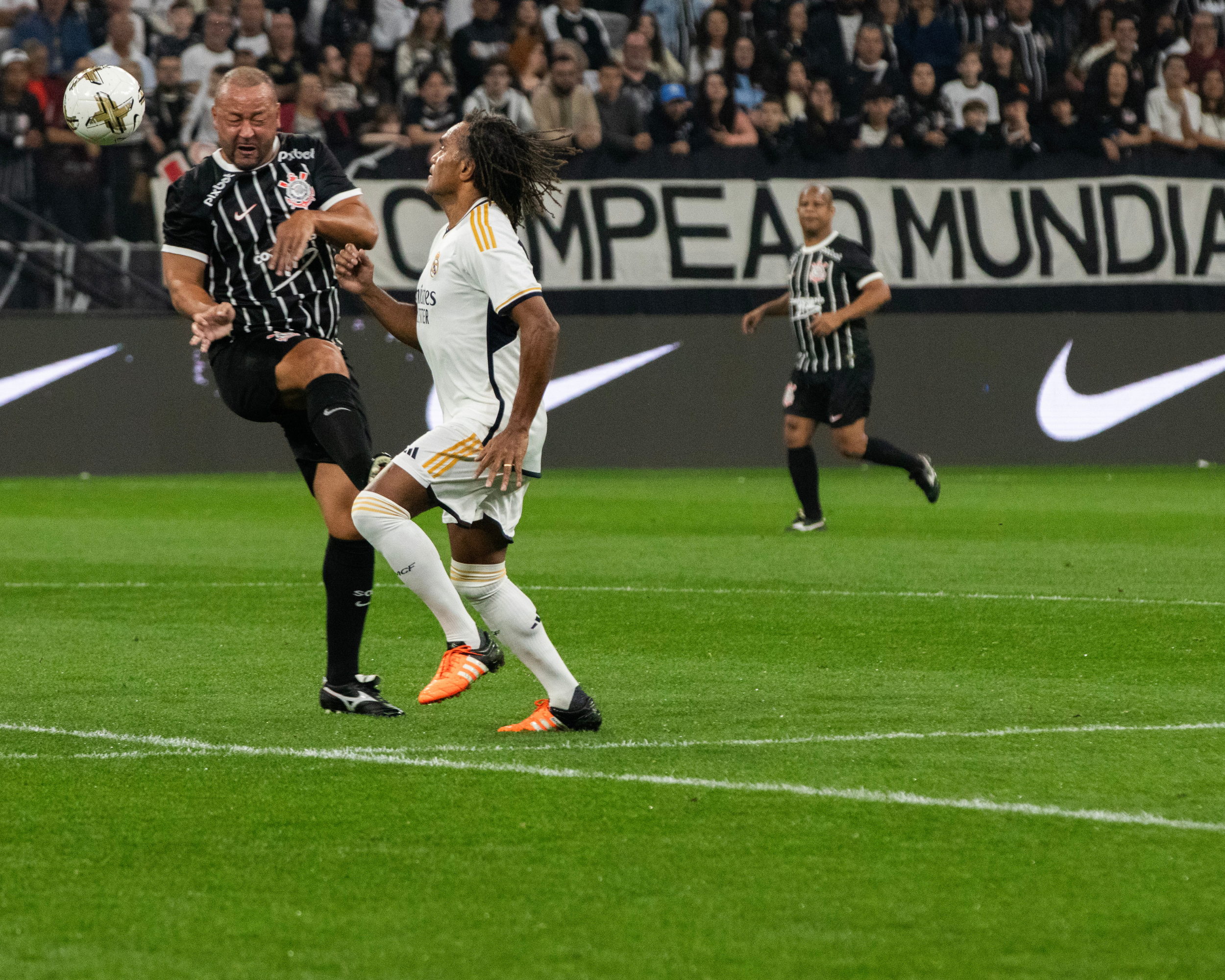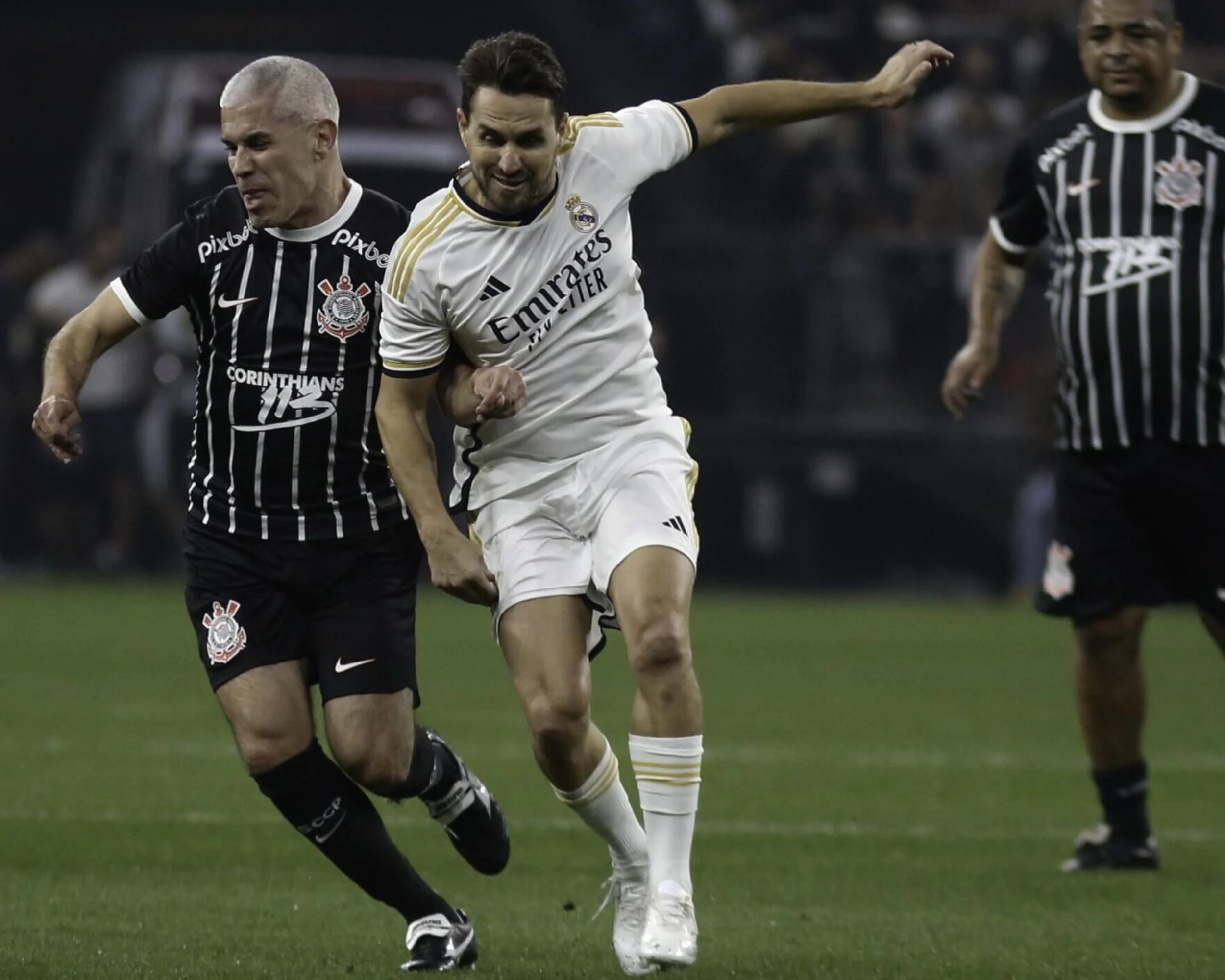 Pelo Corinthians, estiveram em campo ídolos como Edílson Capetinha, Marcelinho Carioca, Vampeta, Dinei e Fernando Baiano. Já o Real Madrid Leyendas contou com craques consagrados como Karembeu, Seedorf, Emerson, Sávio e McManaman, transformando a noite em uma verdadeira celebração do futebol que marcou gerações.
